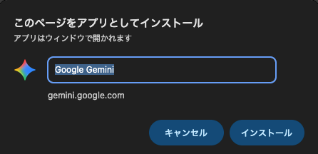 そこでおすすめなのが、Chrome で Gemini をアプリ化する方法です。